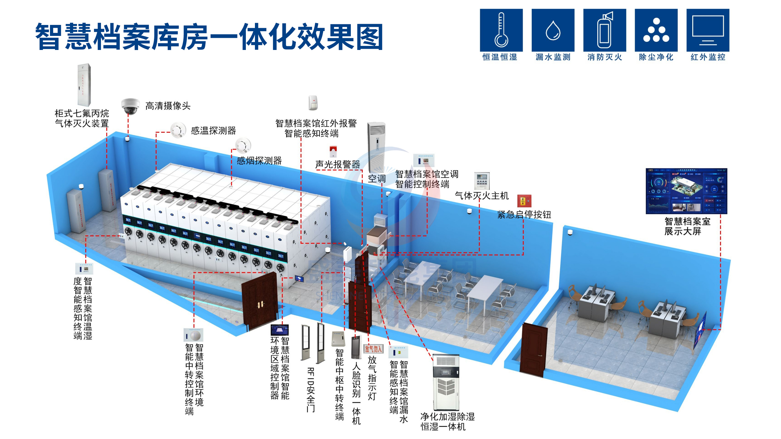 主营:智能密集柜,智能化一体档案室,数字化档案库房,档案室环境监控系统