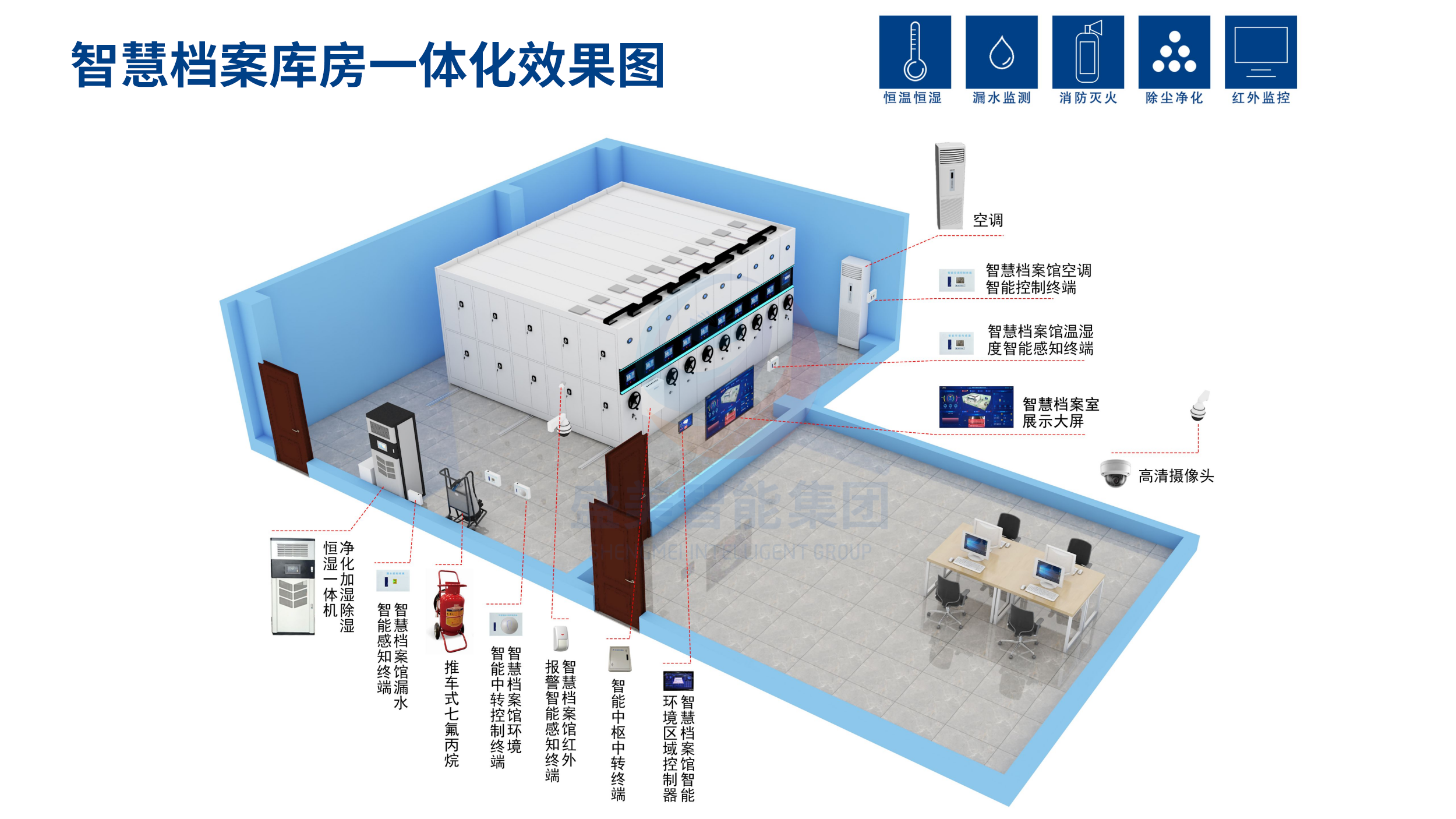安防系统:包括视频监控、入侵报警、门禁控制等安防设备,实现对档案馆内外环境的全面监控和有效控制,防止非法入侵和盗窃行为的发生。