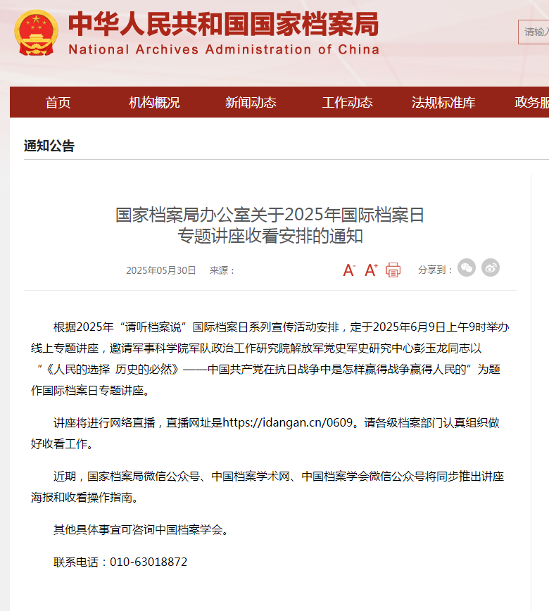 国 家档案局办公室关于2025年国际档案日 专题讲座收看安排的通知