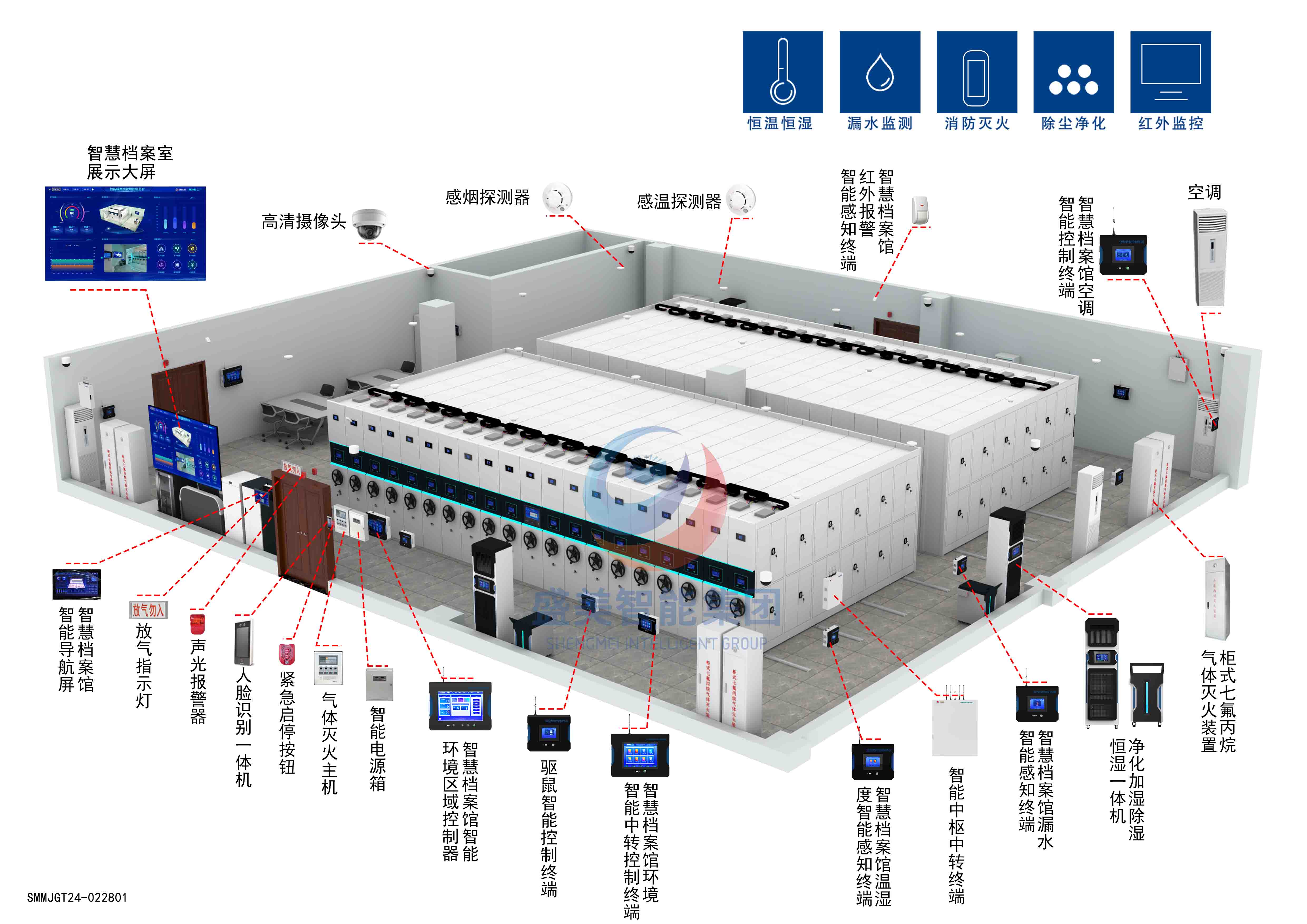 主营:智能密集柜,智能化一体档案室,数字化档案库房,档案室环境监控系统